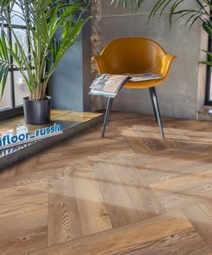 AquaFloor Space Parquet Light выполнен в виде елочки, что придает полу элегантный и современный вид. Благодаря наличию фаски, покрытие выглядит еще более реалистично и объемно, создавая ощущение настоящего деревянного паркета.