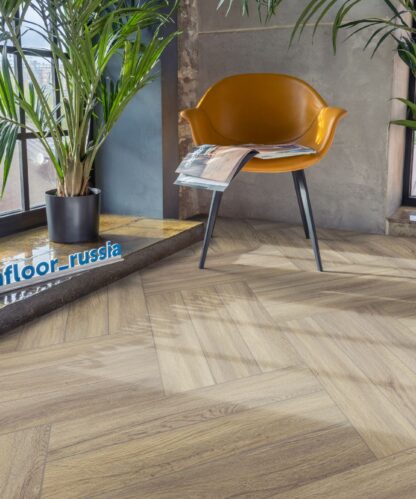 AquaFloor Space Parquet Light выполнен в виде елочки, что придает полу элегантный и современный вид. Благодаря наличию фаски, покрытие выглядит еще более реалистично и объемно, создавая ощущение настоящего деревянного паркета.